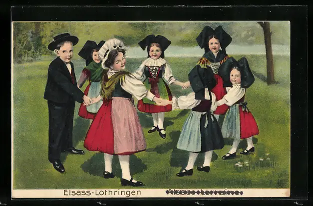 AK Elsass-Lothringen, Kinder in Tracht tanzen im Reigen