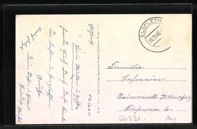 alte Ansichtskarte, gelaufen 1940, Briefmarke entfernt, guter Zustand