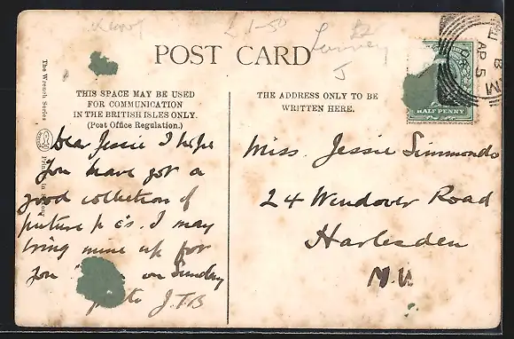 gelaufen 1904, rückseitig Klebe- und Papierreste, rückseitig Oberflächenschaden, guter Zustand