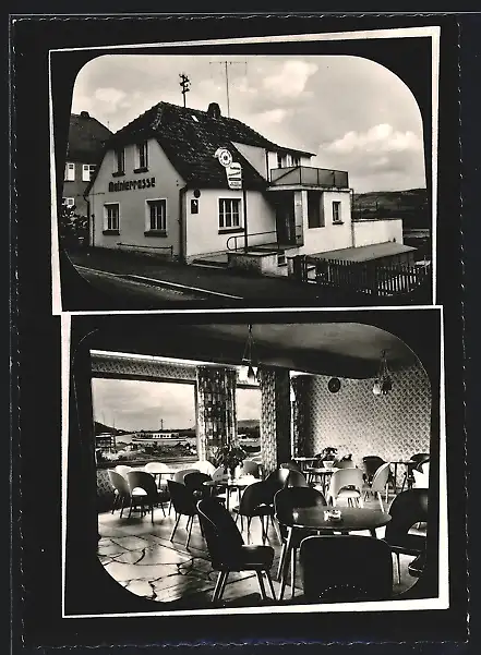 AK Eltmann a. Main, Die Gaststätte Mainaussicht, mit Innenansicht, Inh. M. Karg