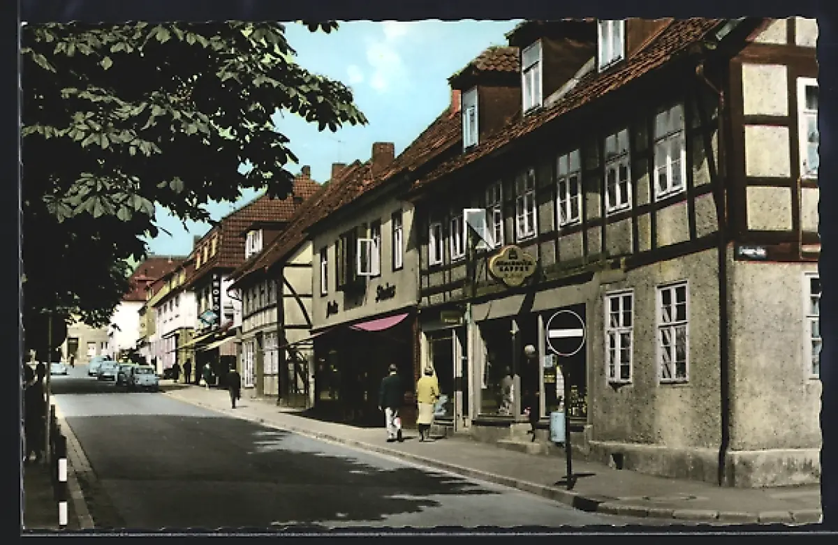 AK Elze /Han., Bahnhofstrasse, Fachwerkhäuser, Strassenszene, Machwotz Kaffee