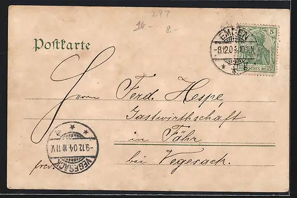 alte Ansichtskarte, gelaufen 1904, Stempelspur, guter Zustand