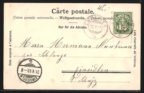 gelaufen 1902, guter Zustand