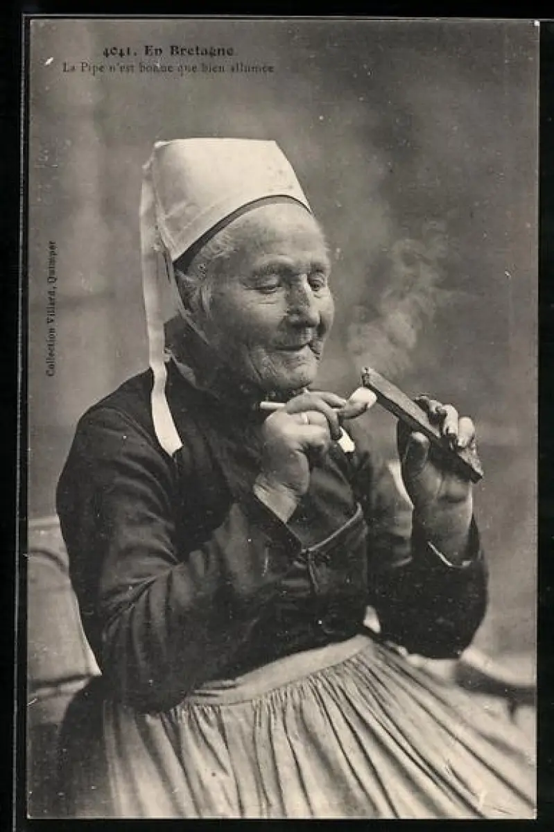 AK En Bretagne, Ältere Frau mit Tabakspfeife