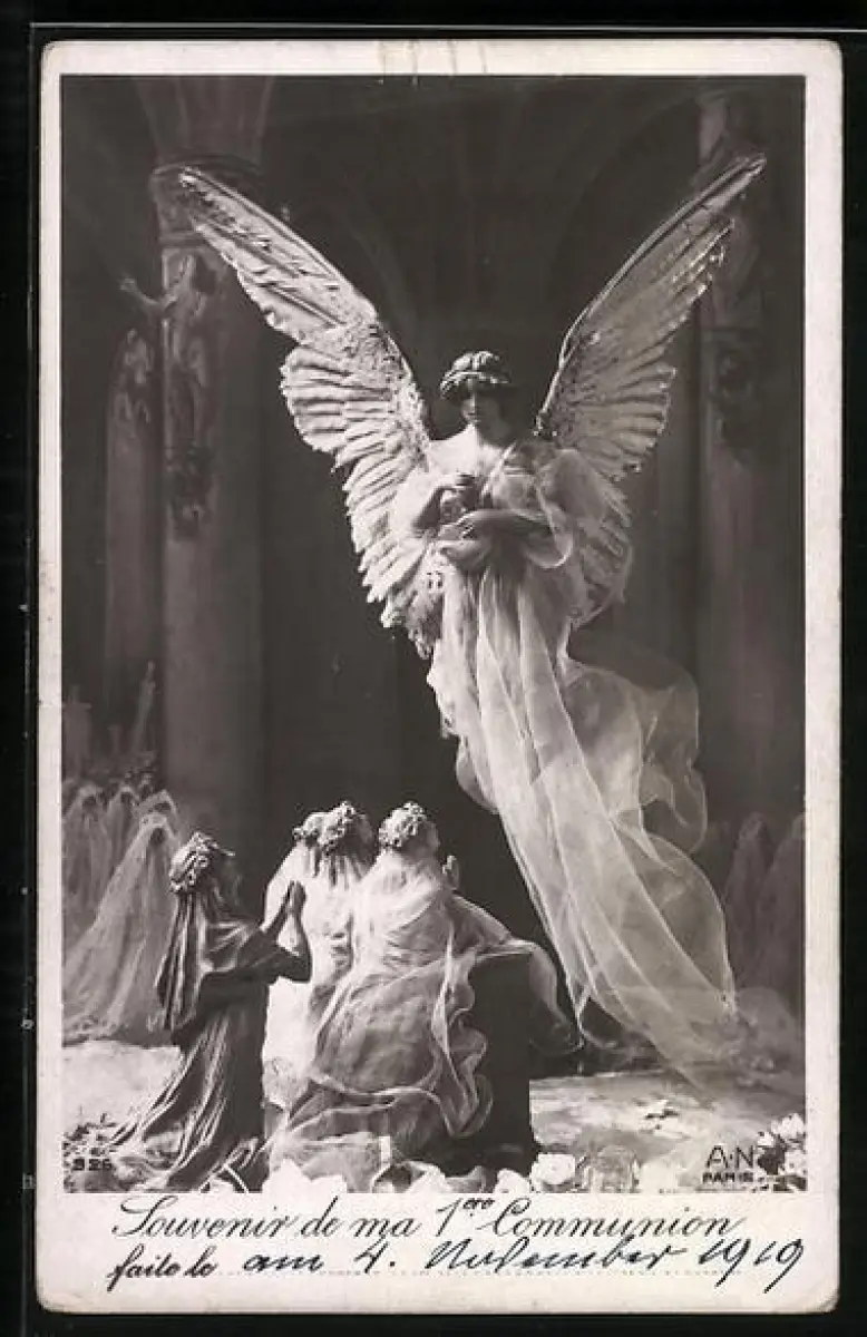 AK Engel erschein Menschen in einer Kirche, Kommunion
