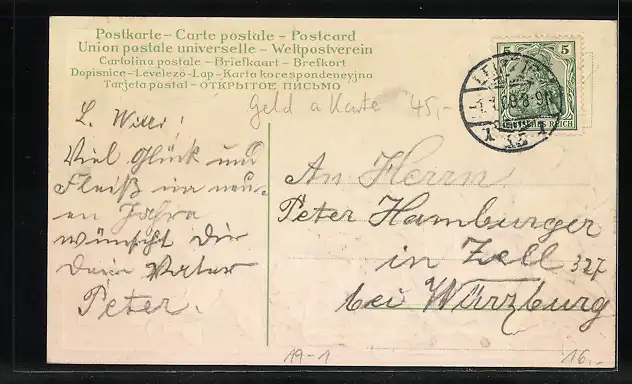 alte Ansichtskarte, gelaufen 1909, guter Zustand