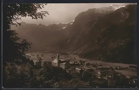 AK Engelberg, Alt-Engelberg mit Titlis bei Dämmerung aus der Vogelschau