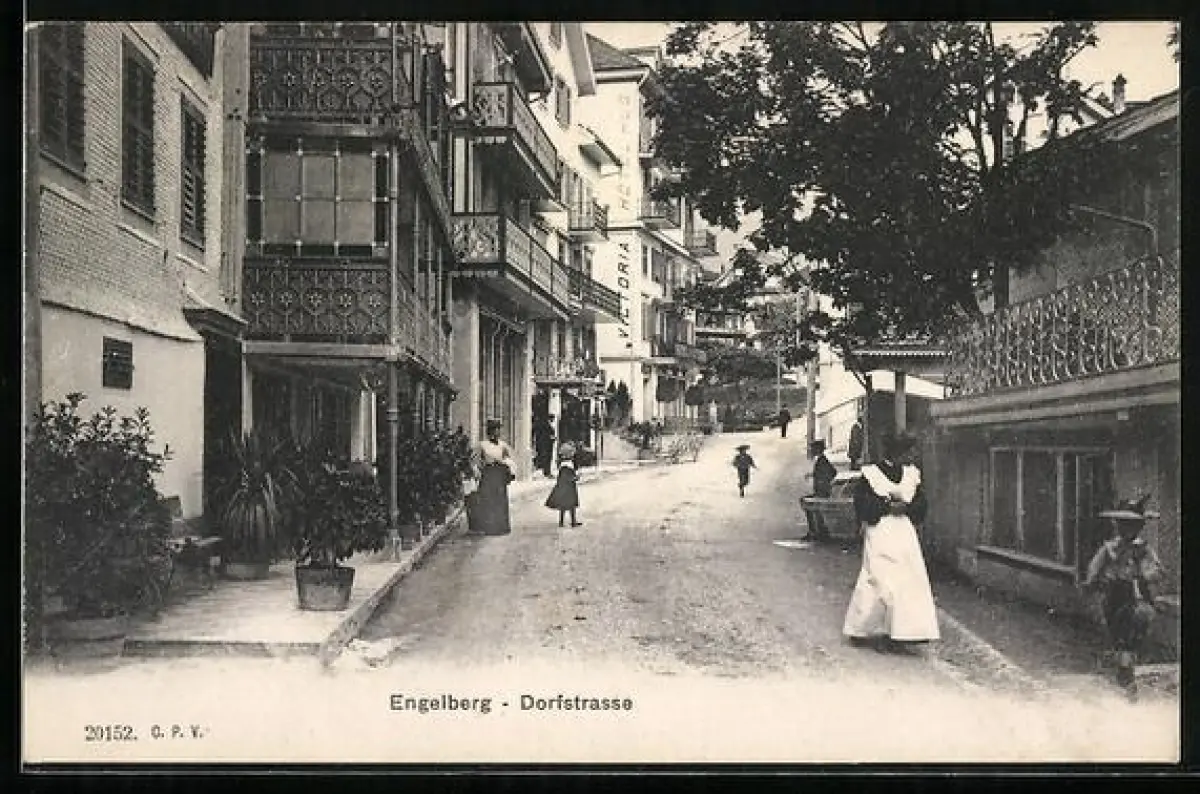AK Engelberg, Dorfstrasse mit Victoria Hôtel Hug