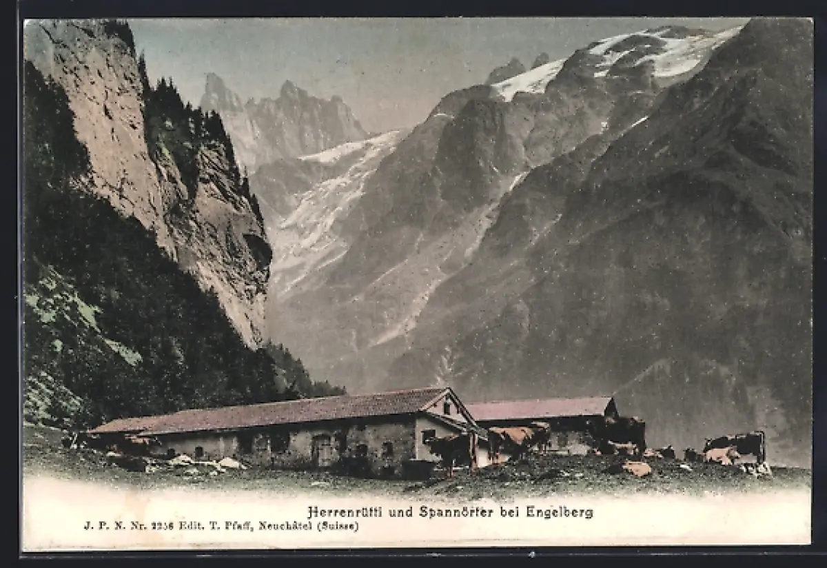 AK Engelberg, Kuhherde vor der Kulisse d. Herrenrütli u. Spannörter