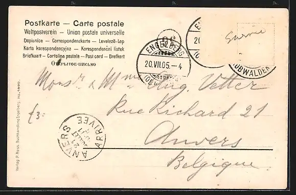 alte Ansichtskarte, gelaufen 1905, Briefmarke entfernt, guter Zustand