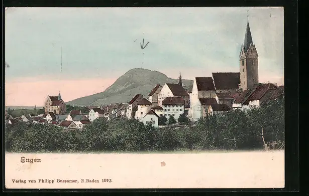 AK Engen, Ortsansicht mit Berg und Kirche