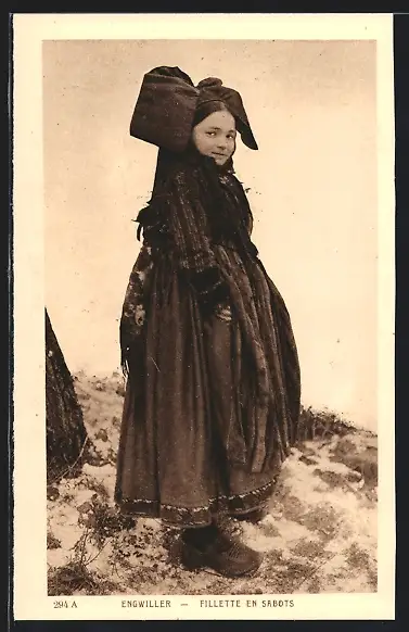 AK Engwiller, Fillette en Sabots, Junges hübsche Mädchen in Tracht
