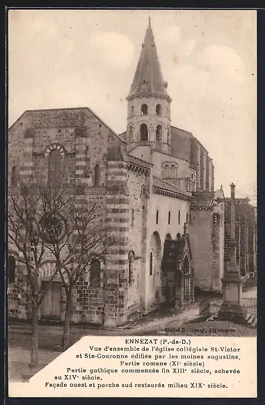 AK Ennezat, Vue de l`église St-Victor et Ste-Couronne, architecture romane et gothique du XIe au XIVe siècle