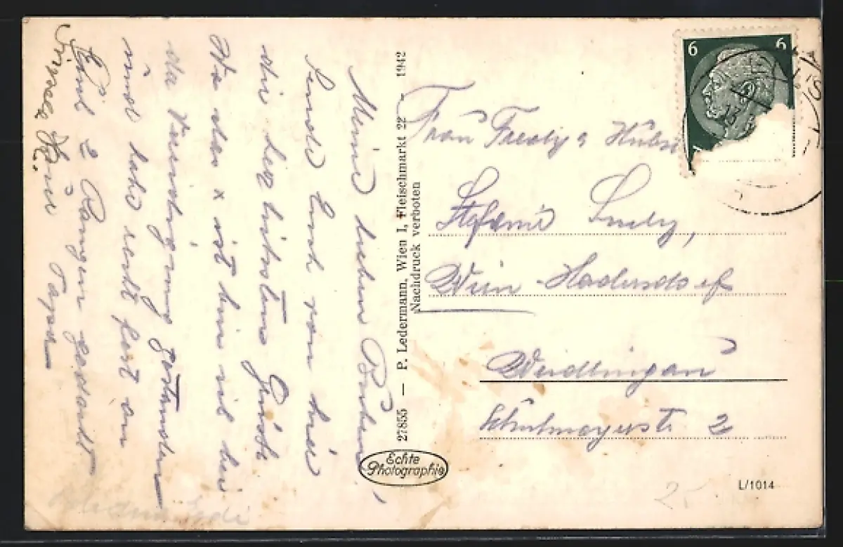 alte Ansichtskarte, gelaufen, Briefmarke entfernt, Eckknicke unten, guter Zustand