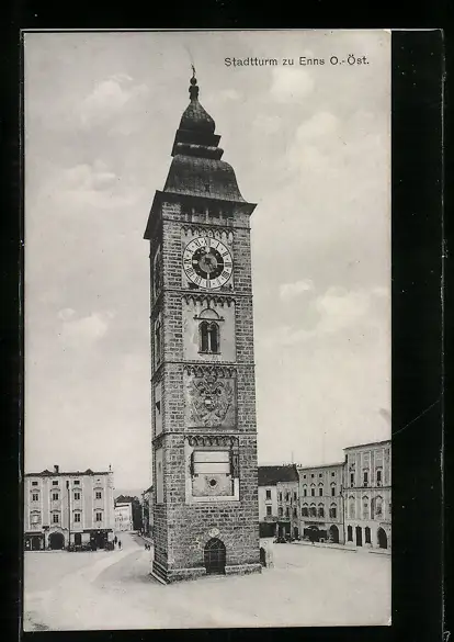 AK Enns, der Stadtturm auf dem Stadtplatz