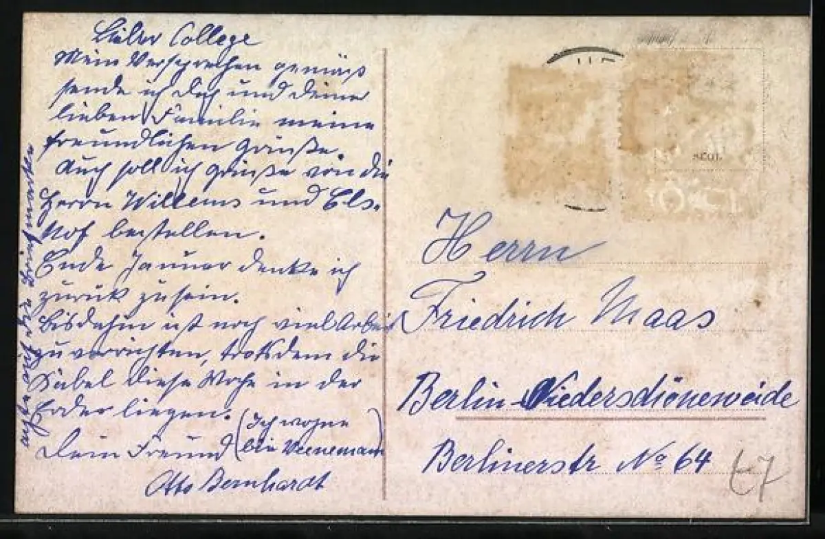 alte Ansichtskarte, gelaufen, Briefmarke entfernt, Abriebspur re. oben, guter Zustand