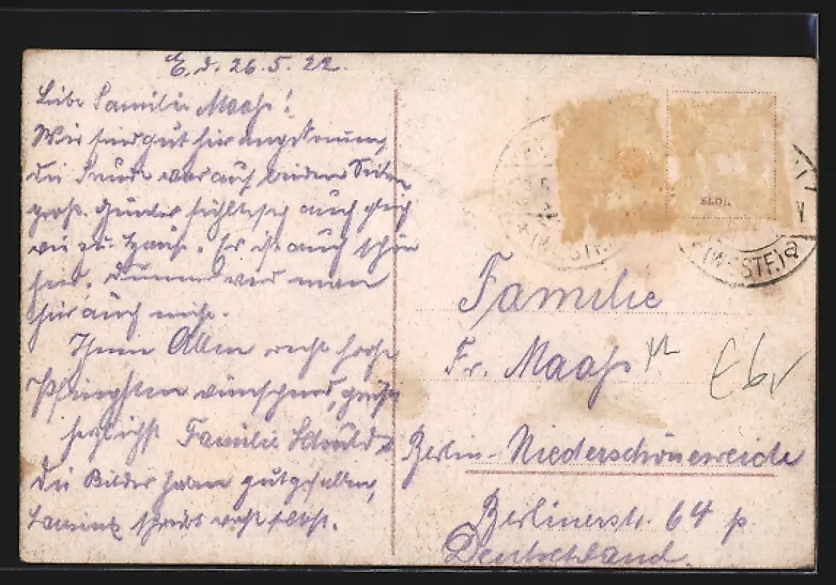 alte Ansichtskarte, gelaufen, Briefmarke entfernt, Stempelspur, guter Zustand