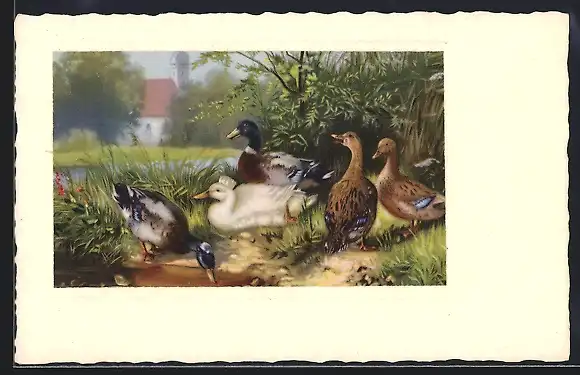 AK Enten ruhen am Gewässerufer