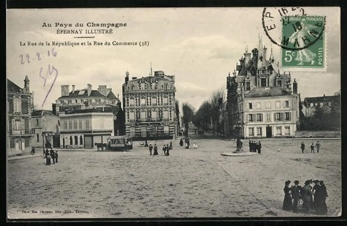 AK Épernay, La Rue de la République et la Rue du Commerce