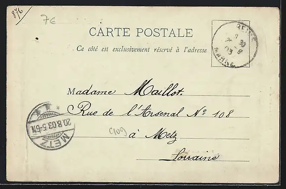 gelaufen 1903, Bugspuren li. oben u. re. unten, guter Zustand