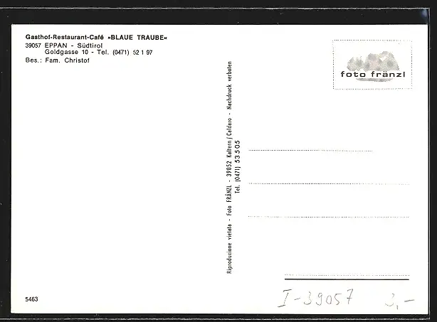 AK Eppan an der Weinstrasse, Gasthof Zur blauen Traube