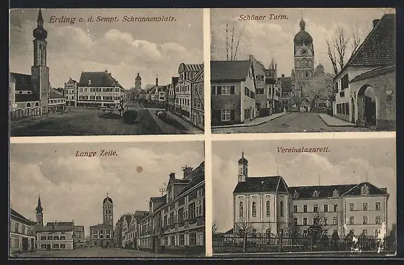 AK Erding a. d. Sempt., Schrannenplatz, Lange Zeile und Vereinslazarett