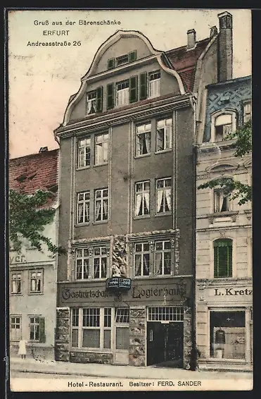 AK Erfurt, Hotel-Restaurant Bärenschänke F. Sander, Andreasstrasse 26, Strassenansicht