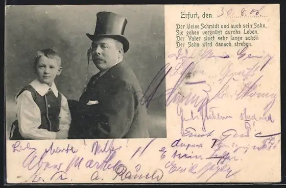 AK Erfurt, Mann im Zyinder mit einem Monokel, sein Enkelsohn daneben