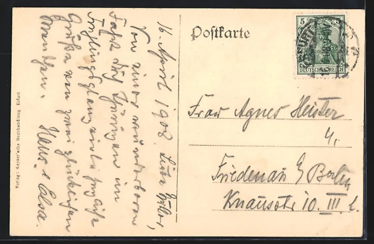 alte Ansichtskarte, gelaufen 1908, Stempelspur, guter Zustand