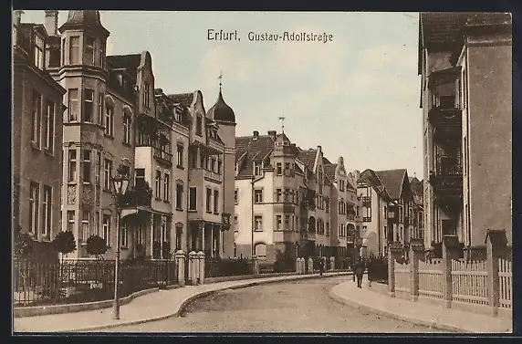AK Erfurt, Partie in der Gustav-Adolfstrasse, mit Abzweig