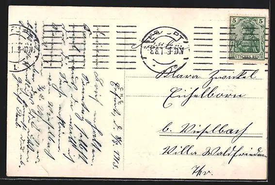alte Ansichtskarte, gelaufen 1913, Stempelspur, guter Zustand