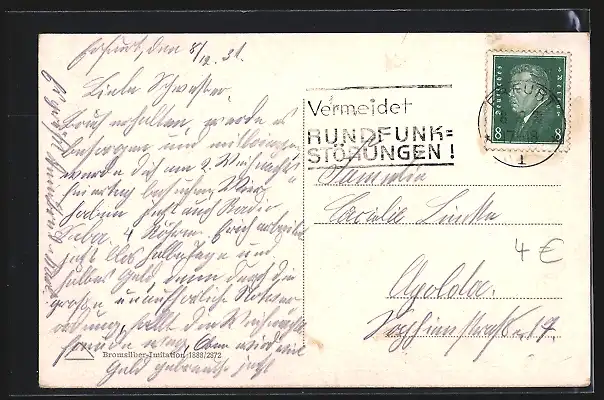 alte Ansichtskarte, gelaufen 1931, Stempelspur, guter Zustand