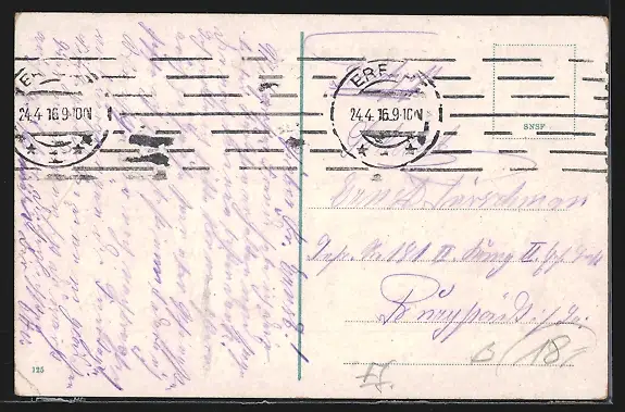gelaufen 1916, Eckknick unten re., Stempelspur, guter Zustand