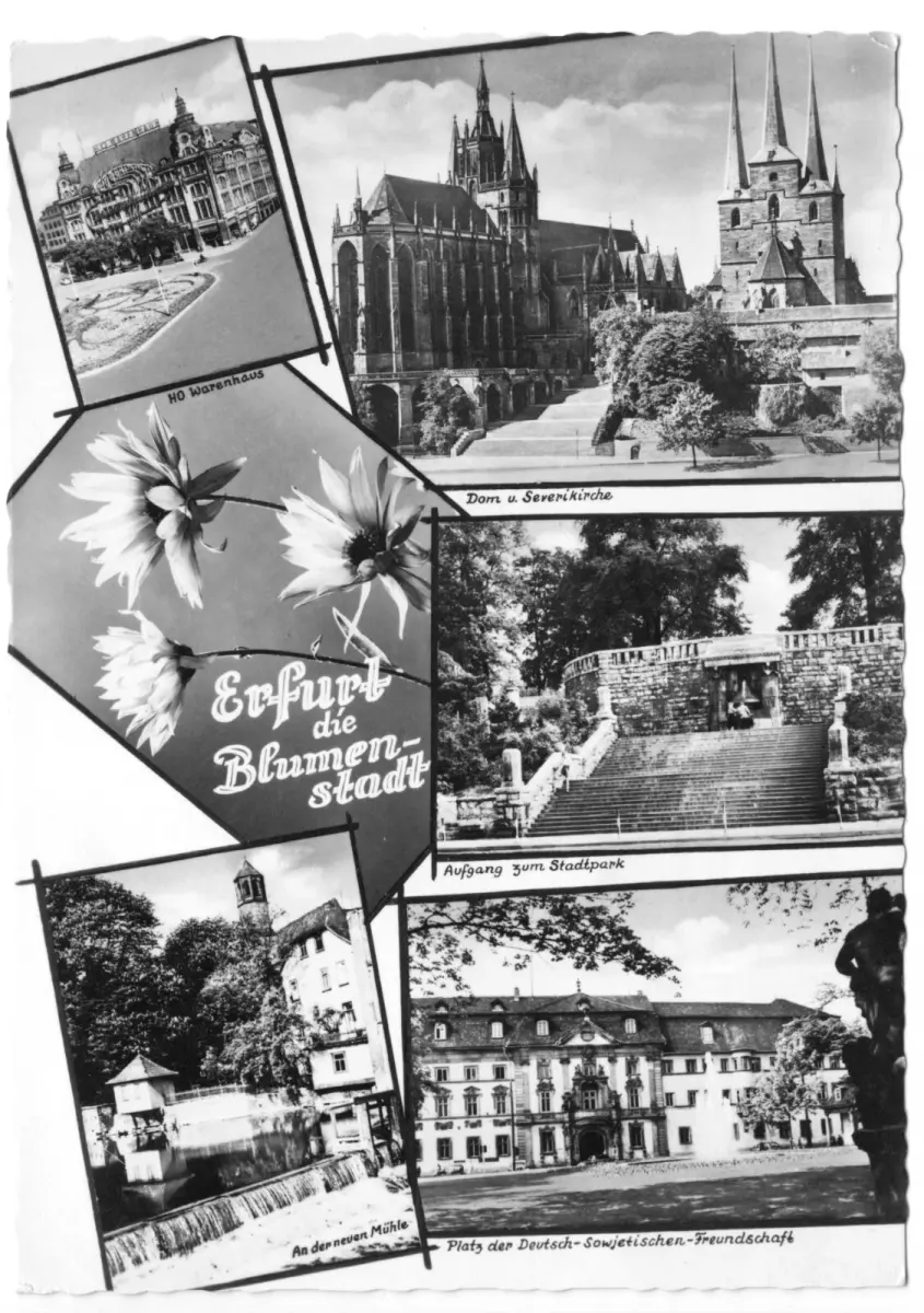 postalisch gelaufen, gestempelt: Erfurt 1, 13.8.61