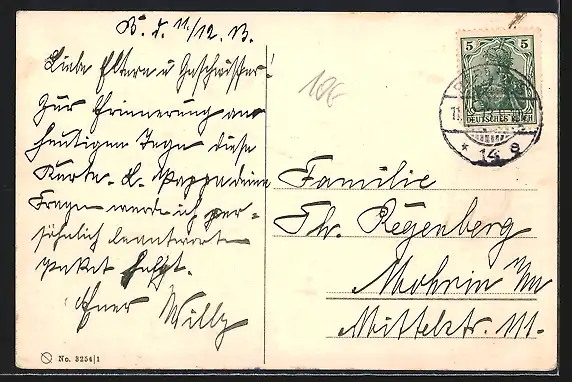 alte Ansichtskarte, gelaufen 1913, Eckknicke unten, guter Zustand
