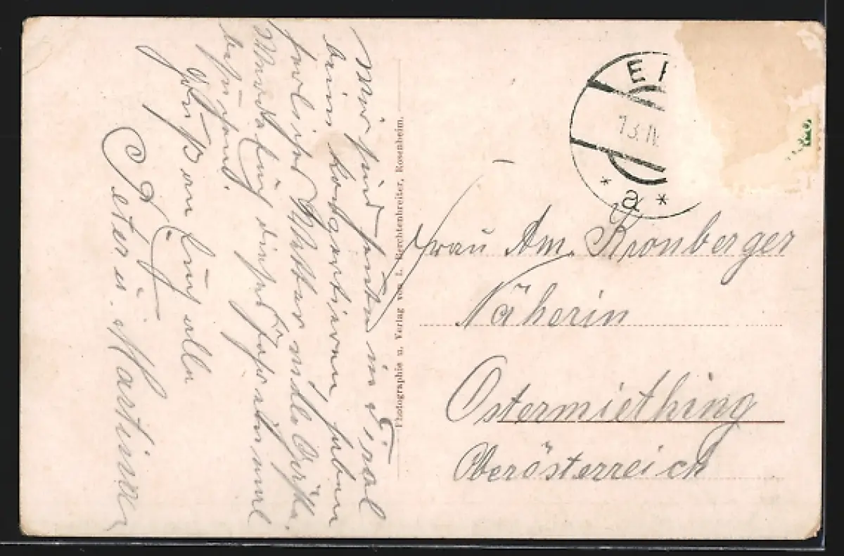 alte Ansichtskarte, gelaufen, Briefmarke entfernt, rückseitig Oberflächenschaden, Eckknicke oben, guter Zustand