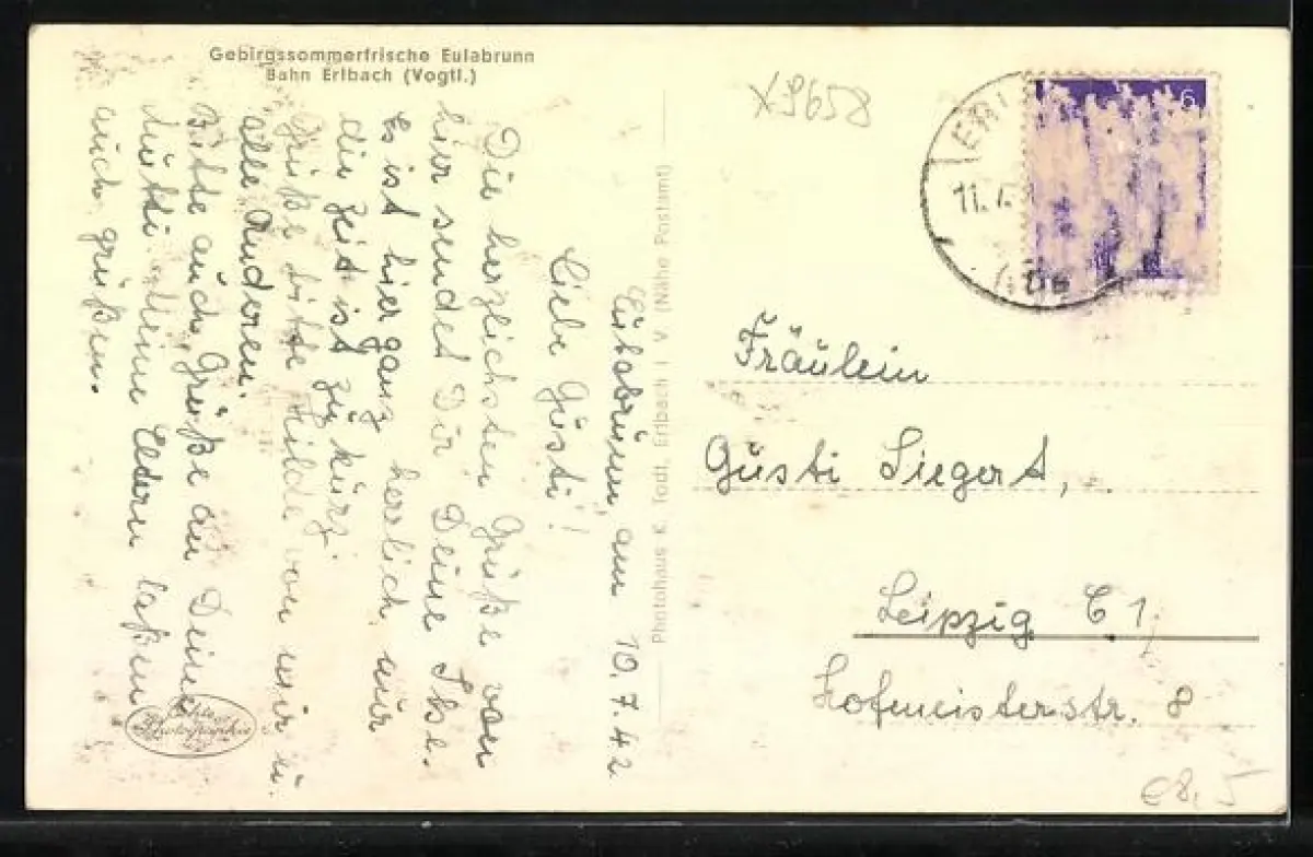 alte Ansichtskarte, gelaufen 1942, Briefmarke entfernt, guter Zustand