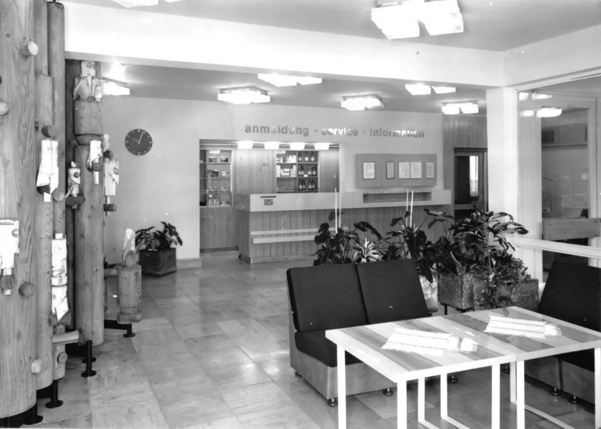 Ansichtskarte Erlbach Vogtl. Foyer des Ferienheimes   Erhaltung I-II postalisch gelaufen, gestempelt: Erlbach, 4.12.79 Druckvermerk: 1978 Herstellungsland: DDR Verlag: VEB Foto-Verlag, 9934 Erlbach i. V. - 07 14 18 114