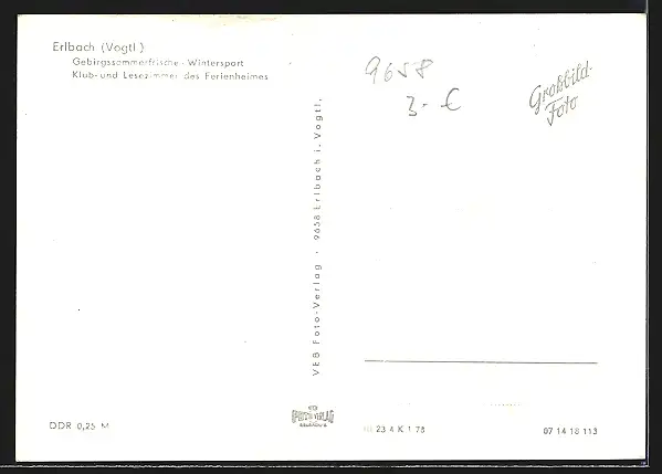 AK Erlbach / Vogtl., Klub- und Lesezimmer des Ferienheimes