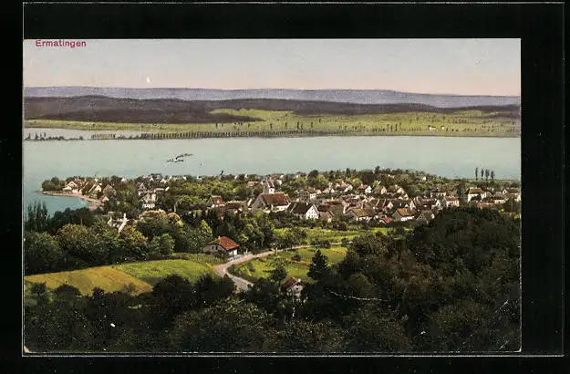 AK Ermatingen, Ortsansicht aus der Vogelschau mit See