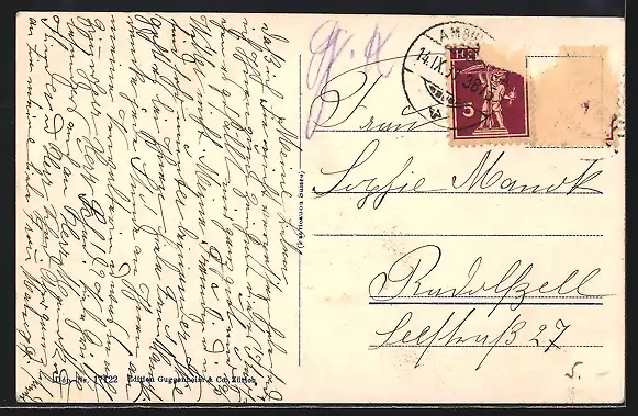 alte Ansichtskarte, gelaufen, Briefmarke entfernt, guter Zustand