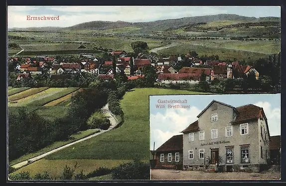 AK Ermschwerd, Gasthaus Willi Bretthauer, Ortsansicht