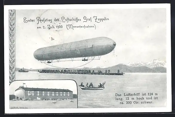 AK Erster Aufstieg des Luftschiffes Graf Zeppelin am 02. Juli 1900