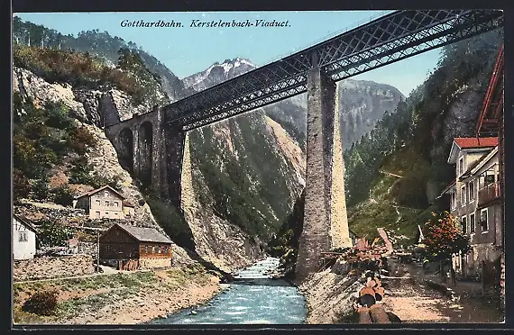 AK Erstfeld, Kerstelenbach-Viadukt der Gotthardbahn