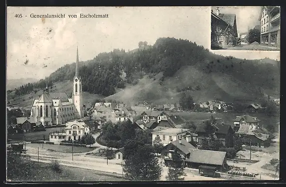 AK Escholzmatt, Generalansicht vor Hügelkette