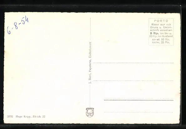 Personenbezogene Daten auf der Rückseite der Karte wurden durch blauen Textmarker unkenntlich gemacht. Die blauen Stellen sind auf die Vorderseite durchgeweicht und wirken sich negativ auf das Postkartenfoto aus