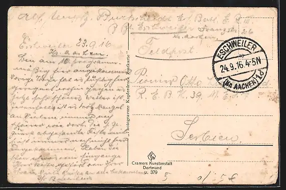 alte Ansichtskarte, gelaufen 1916, Eckknick unten re., guter Zustand