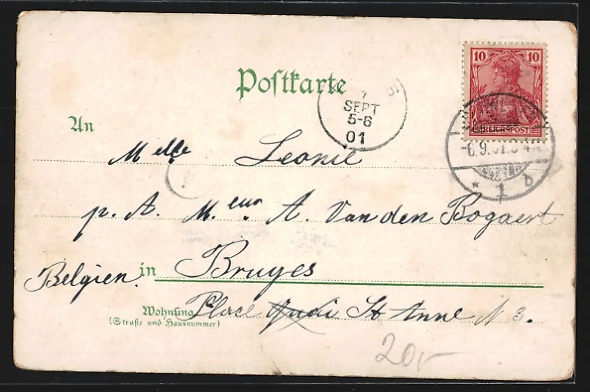 alte Ansichtskarte, gelaufen 1901, Eckknick oben links, guter Zustand