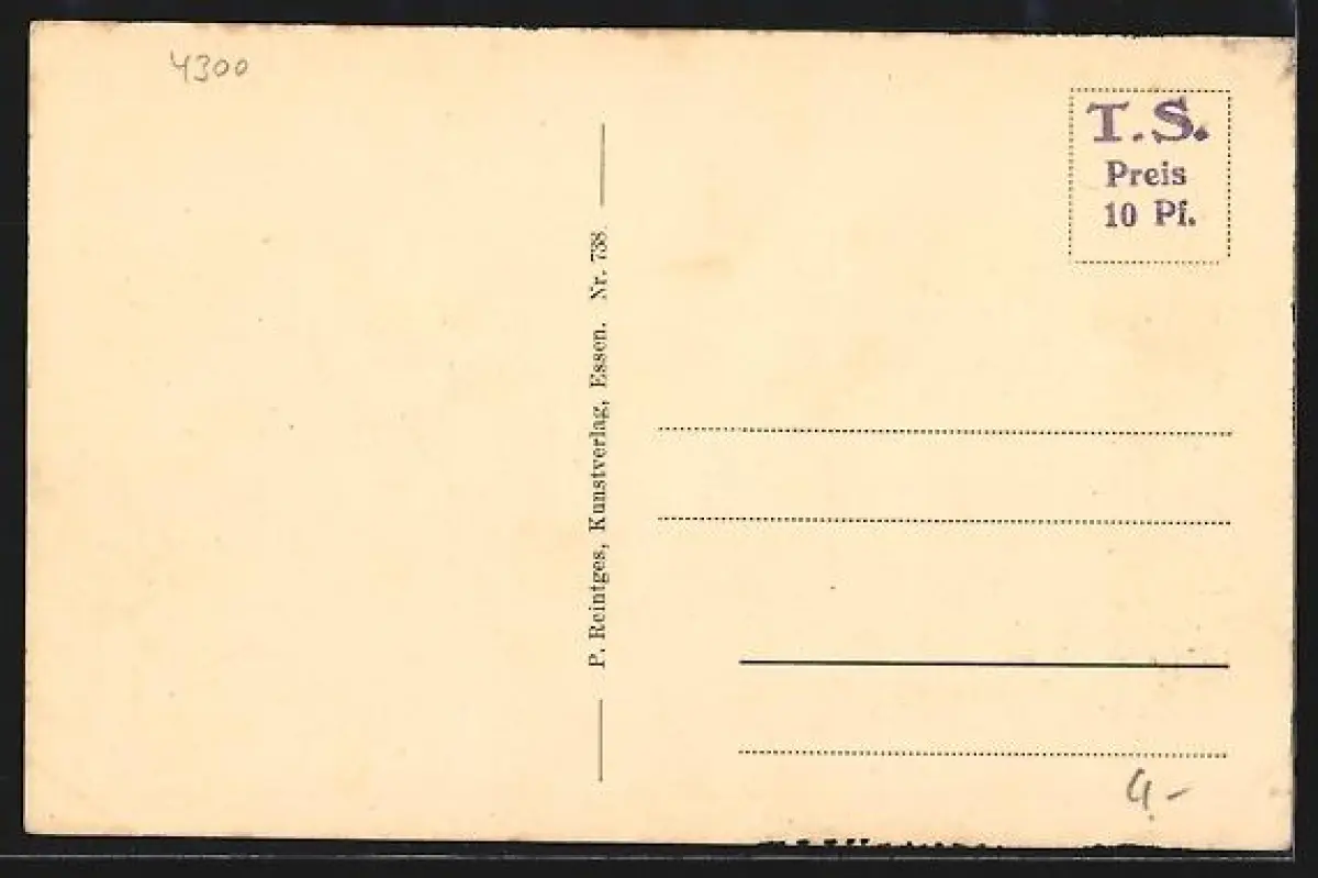 Personenbezogene Daten auf der Rückseite der Karte wurden durch blauen Textmarker unkenntlich gemacht. Die blauen Stellen sind auf die Vorderseite durchgeweicht und wirken sich negativ auf das Postkartenfoto aus