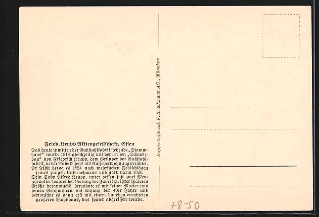AK Essen, Friedr. Krupp Aktiengesellschaft, Stammhaus wurde 1818 dem 1. Schmelzbau v.Krupp als Aufseherwohnung errichtet